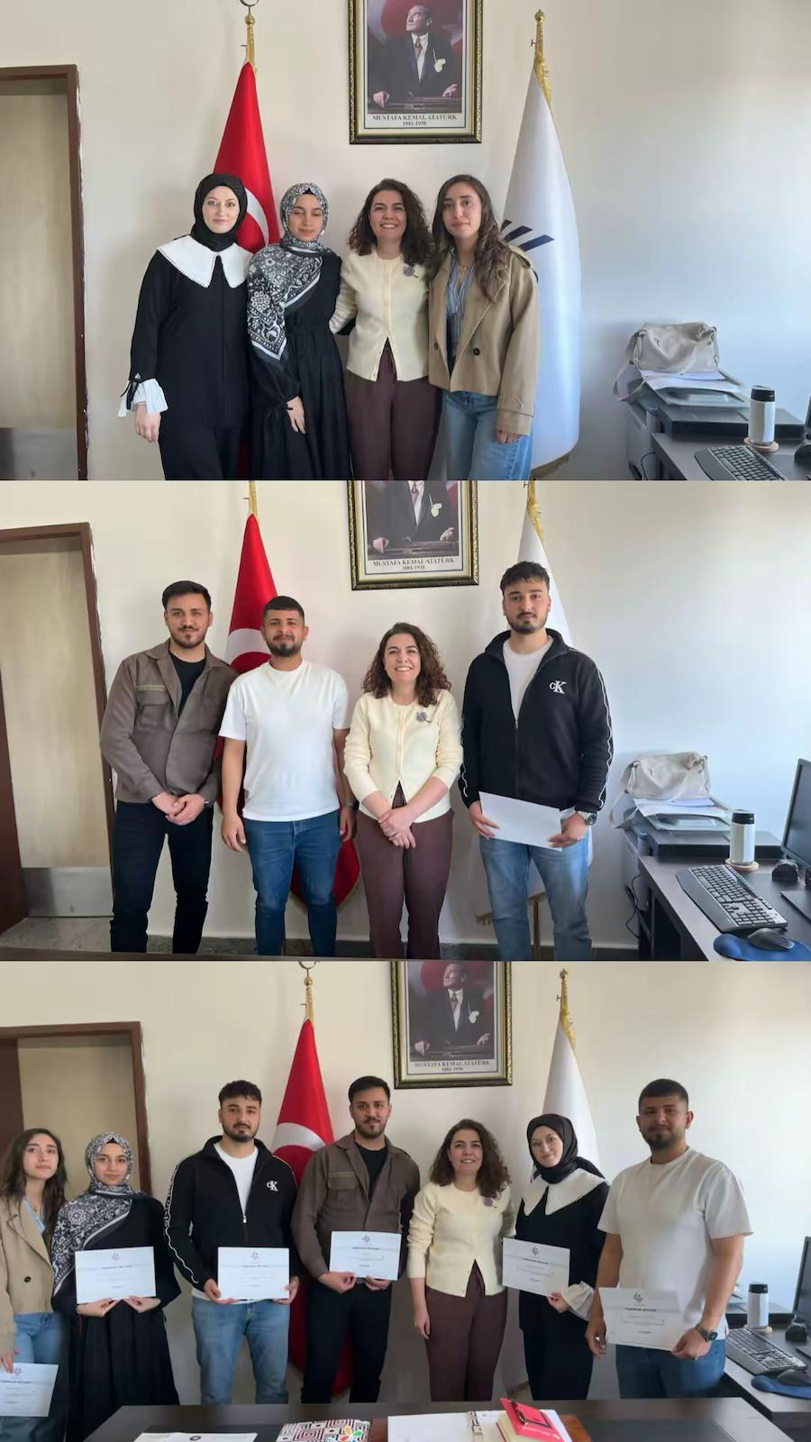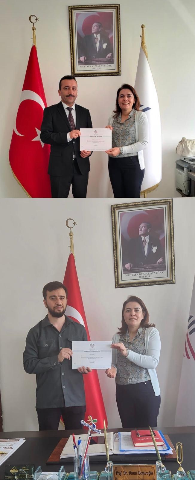 Geçtiğimiz günlerde düzenlenen Kilis İli İklim Değişikliği Çalıştayında, aktif görev alan lisans öğrencileri ile fakültede görev yapan teknik ve idari personele, organizasyona sağladıkları katkılar nedeniyle Fakülte Dekanı Prof. Dr. Demet DEMİROĞLU tarafından teşekkür belgeleri takdim edildi.